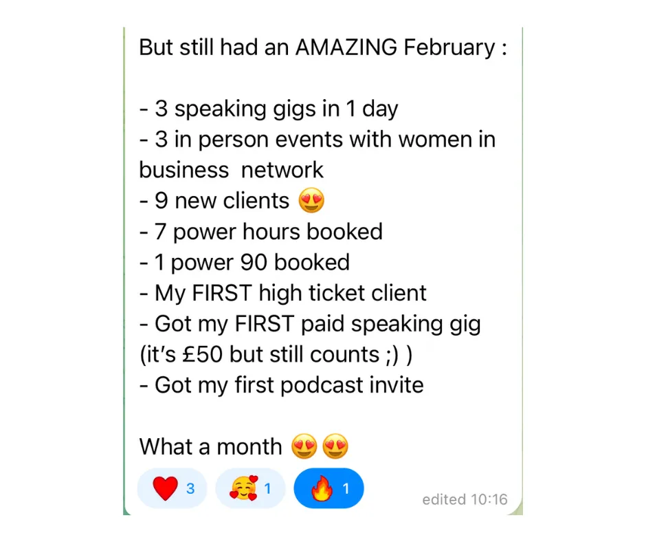 Do not join this space if you don’t know who you are, if you’re not already an entrepreneur, or if you don’t already have clients & deliver exceptional client results.